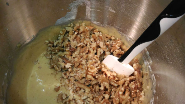 Prendiamo l’impasto pronto e uniamo con una spatola prima le noci.