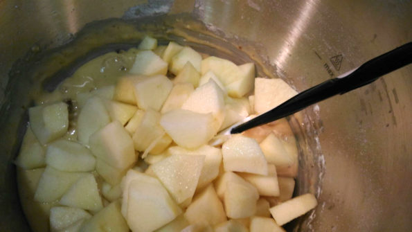 Successivamente le mele, muovendo bine l’impasto, in modo da sporcare bene le mele.