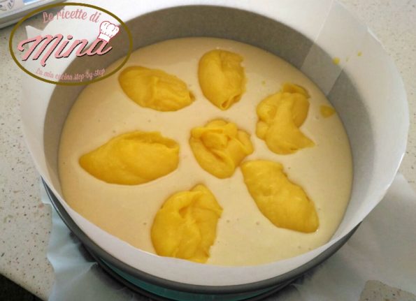 Subito dopo prendiamo la crema di limoni e versiamo a cucchiaiate cosi come da foto.