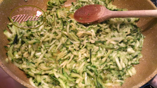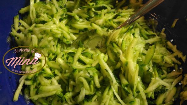 Grattugiamo le zucchine e le mettiamo 10 minuti sotto sale per eliminare la troppa acqua presente.