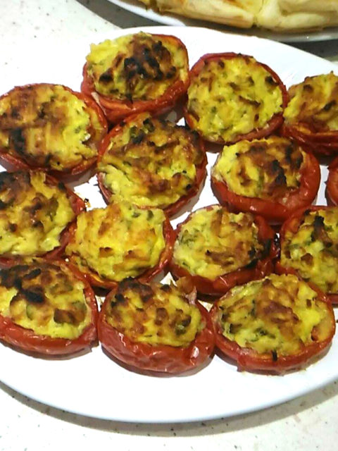 A seguire ho gratinato dei pomodori con ripieno di ricotta presto la ricetta.