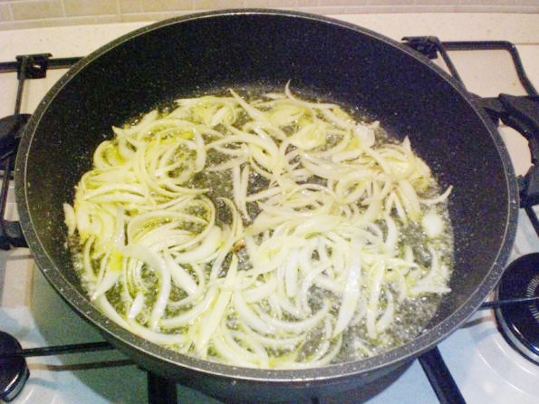Prendete una bella cipolla affettatela e mettetela in una casseruola capiente con olio extra vergine d’oliva.