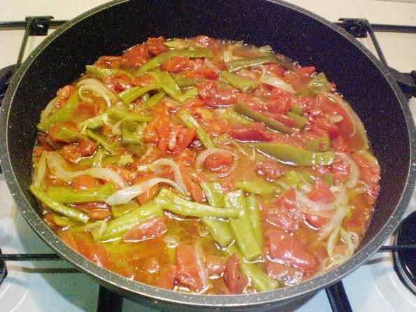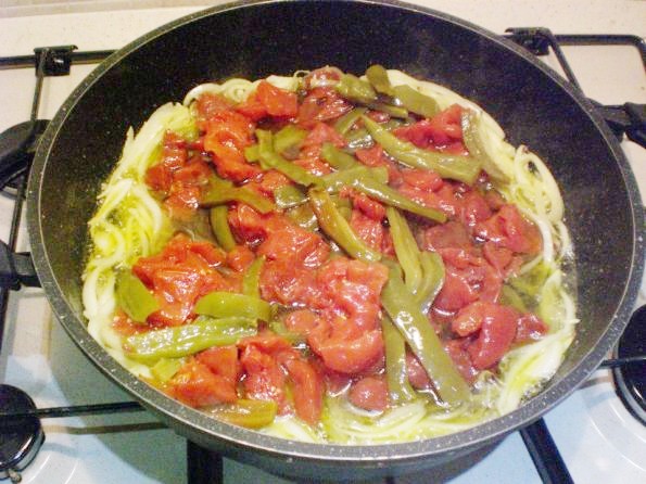 Successivamente aggiungete la conserva o in altro caso i peperoni puliti e il pomodoro spellato fatto in pezzi.