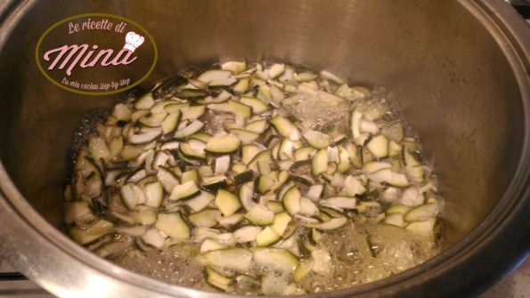 Raggiunto il bollore versiamo dentro le zucchine e appena riparte il bollore di nuovo, aspettiamo giusto 2 minuti.