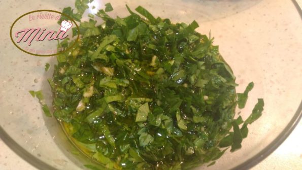 Mi preparo una mistura di olio extra vergine di oliva, prezzemolo e aglio schiacciato.