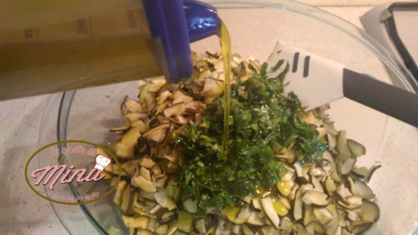 Non dimenticate di mettere l’olio extra vergine ogni tanto mentre versate il prodotto.