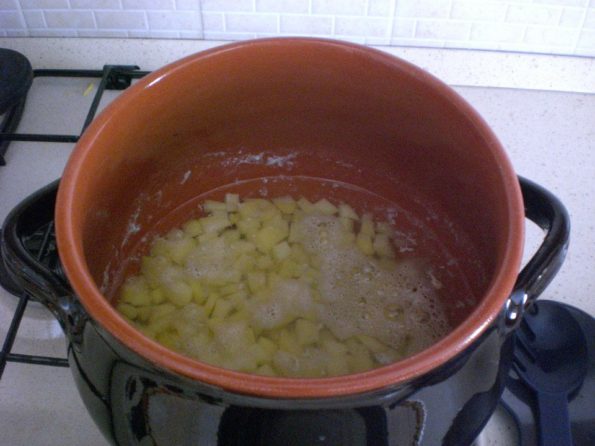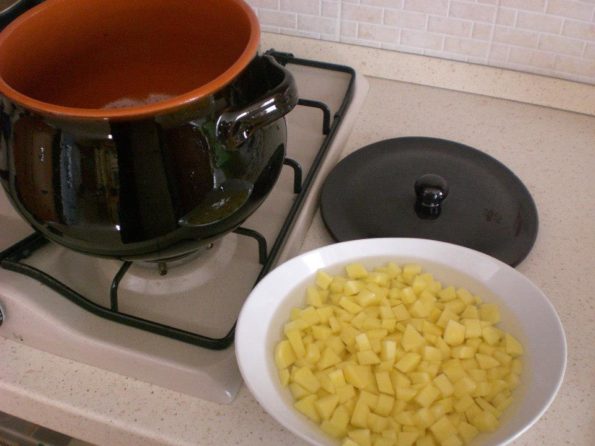 Prendete una pentola io uso il coccio e mettetevi a bollire le patate tagliate a tocchetti.