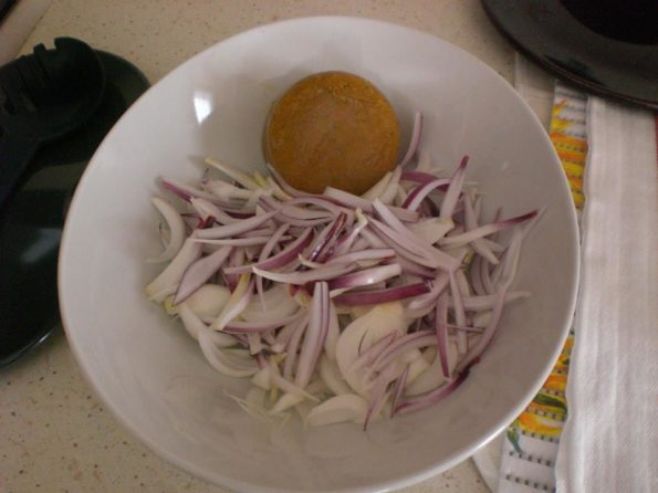 Ho usato una cipolla bianca e una rossa, ma va a seconda del vostro gusto, insomma quella che avete a disposizione e per il dado ho usato quello congelato, fatto in casa da me vi lasciato la ricetta fra gli ingredienti.